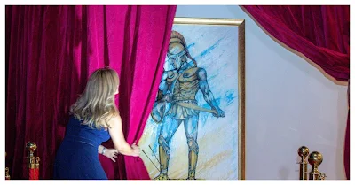 Η τελετή των αποκαλυπτήριων ήταν πραγματικά εντυπωσιακή. Ο πίνακας παρέμενε κρυμμένος πίσω από κόκκινες βελούδινες κουρτίνες που βρίσκονταν στο τέλος ενός εκπληκτικού κόκκινου χαλιού. Καθώς οι ομιλίες γέμιζαν τον αέρα και η ανυπομονησία αυξανόταν, οι κουρτίνες ανοίχτκαν από τους δύο προέδρους, αποκαλύπτοντας τον εκπληκτικό πίνακα που ήταν πλαισιωμένος με χρυσή κορνίζα. Αυτή η στιγμή συναντήθηκε με ένα κρεσέντο από φωνές εκπλήξεων και παρατεταμένα χειροκροτήματα, αντηχώντας τον συνολικό θαυμασμό που ένιωθαν όλοι οι παρευρισκόμενοι.
